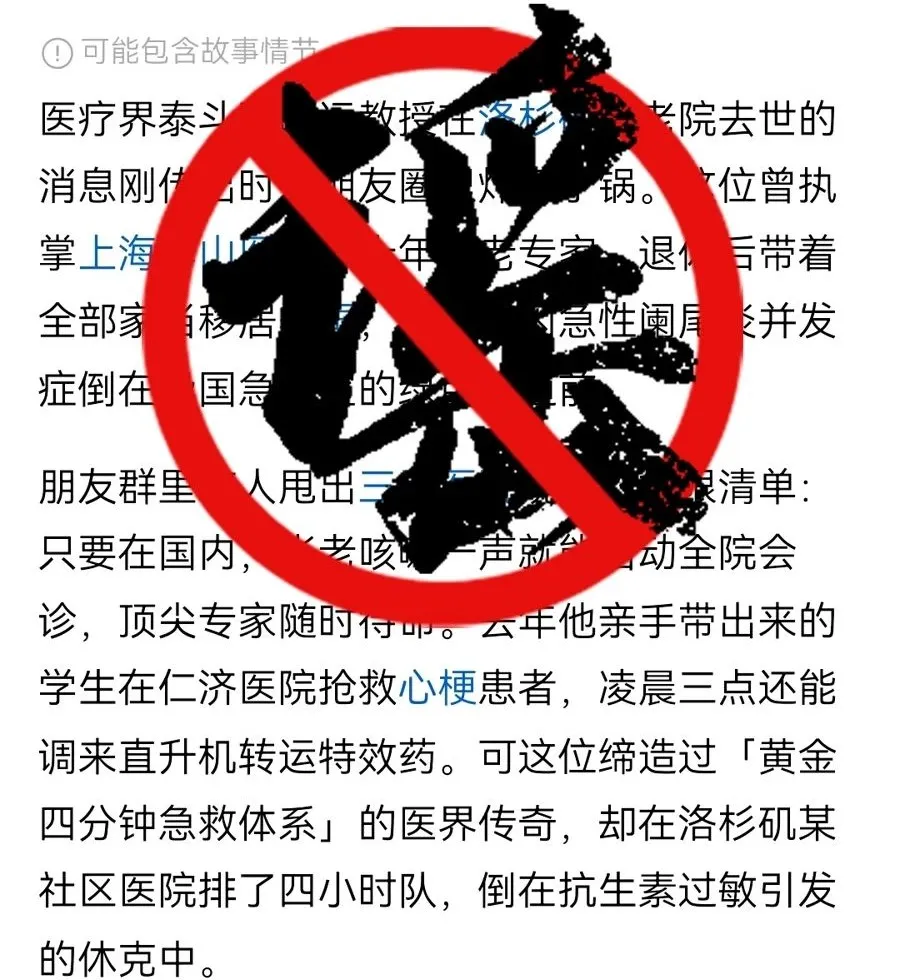 网警打谣 | 使用AI工具捏造“华山医院前院长张明远客死他乡”网络谣言者已被依法采取刑事强制措施